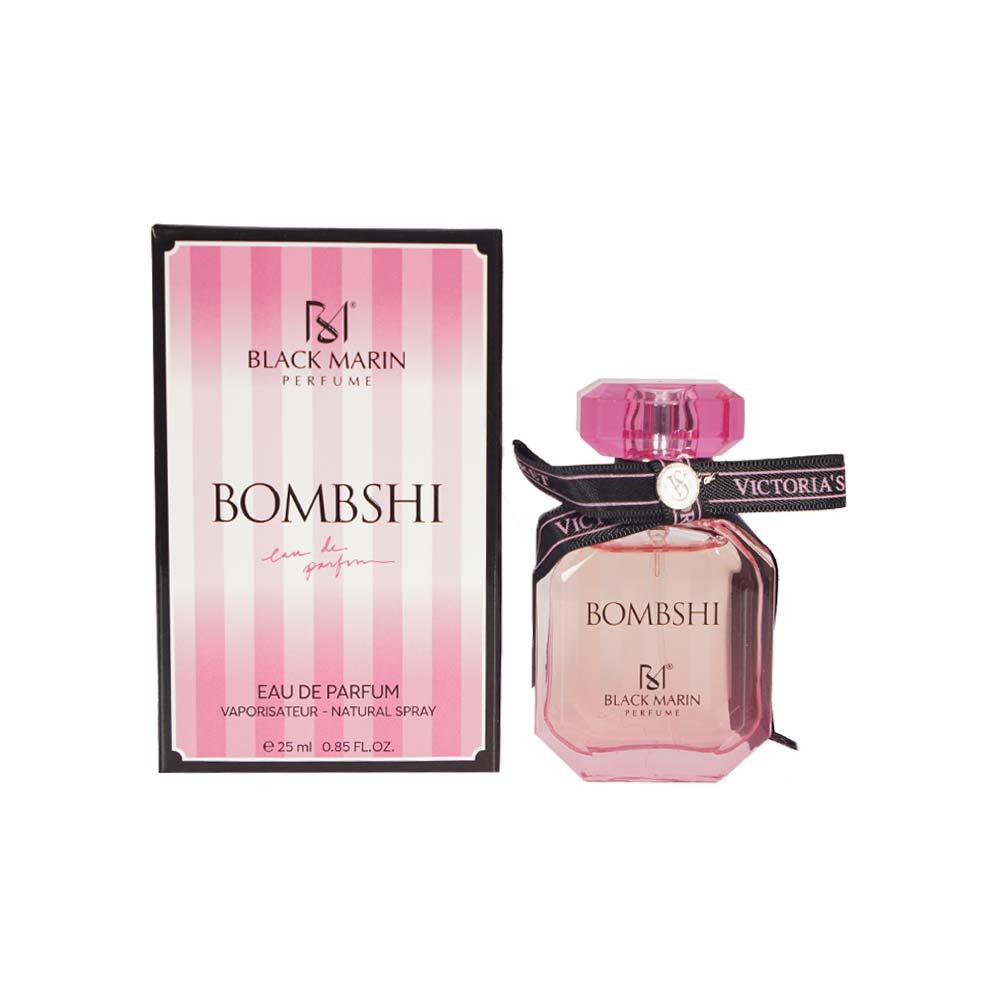 ادکلن مینیاتوری ۲۵ میل بلک مارین رایحه بامبشل یک عطر زنانه شاداب، جذاب و بسیار پرطرفدار است که با الهام از عطر افسانهای Bombshell از برند Victoria’s Secret تولید شده.